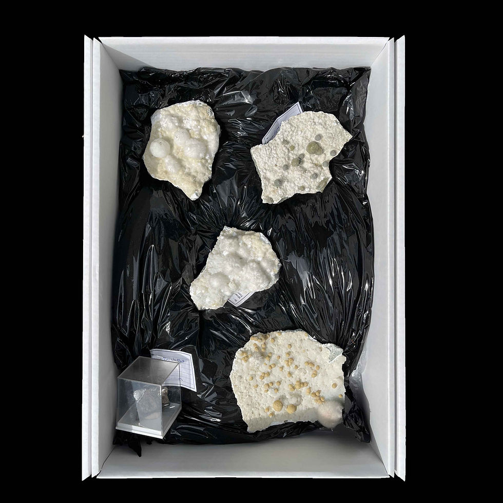 Apophylit, Calcit, Stilbit, Gyrolith, Chalcedon – Indien